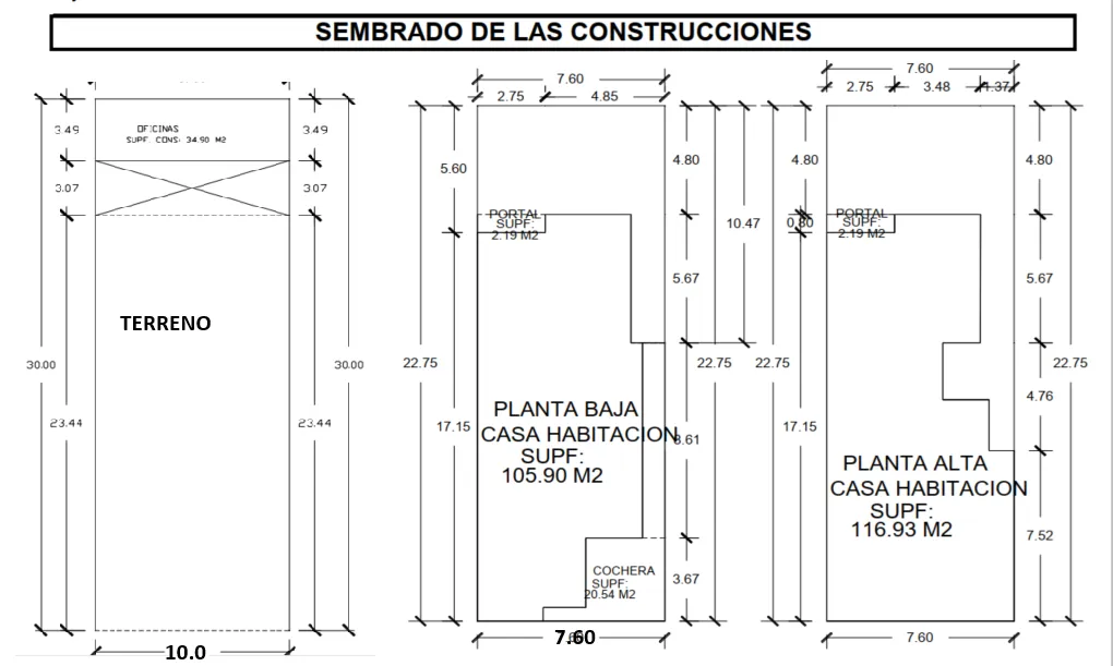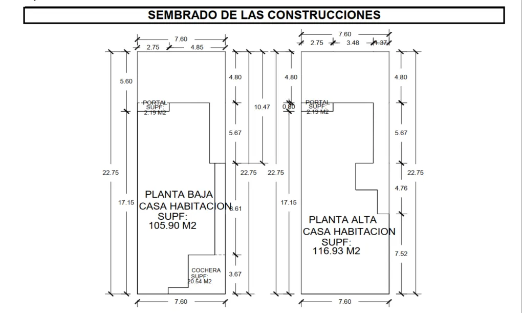 LA CASA ESTA CONSTRUIDA SOBRE UNA SUPERFICIE DE 7.60 DE FRENTE X 22.75