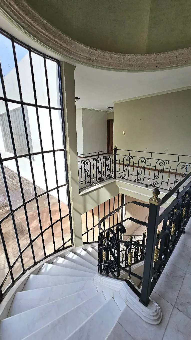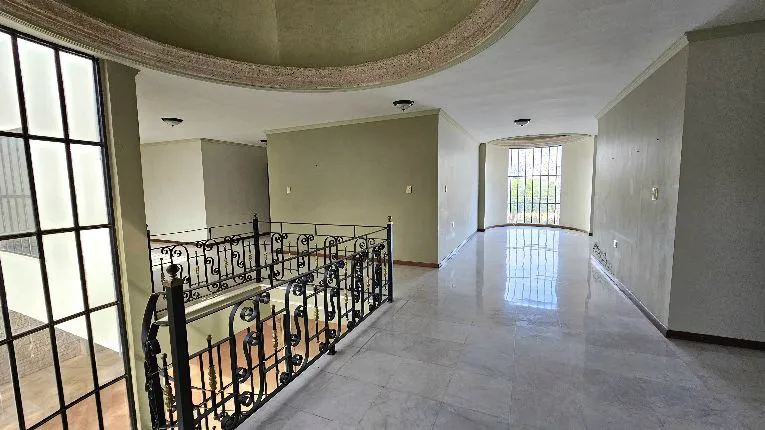 cuenta con cochera para 4 autos, 5 recámaras (una en planta baja), 5 baños, 2